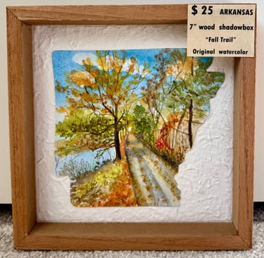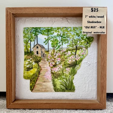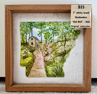 Sweet original watercolors celebrating favorite Arkansas places in 7"natural looking shadowbox style frames perfect for a desk, bookshelf accent or wall! Only $25! Can be commissioned with YOUR favorite photo for a bit more!
