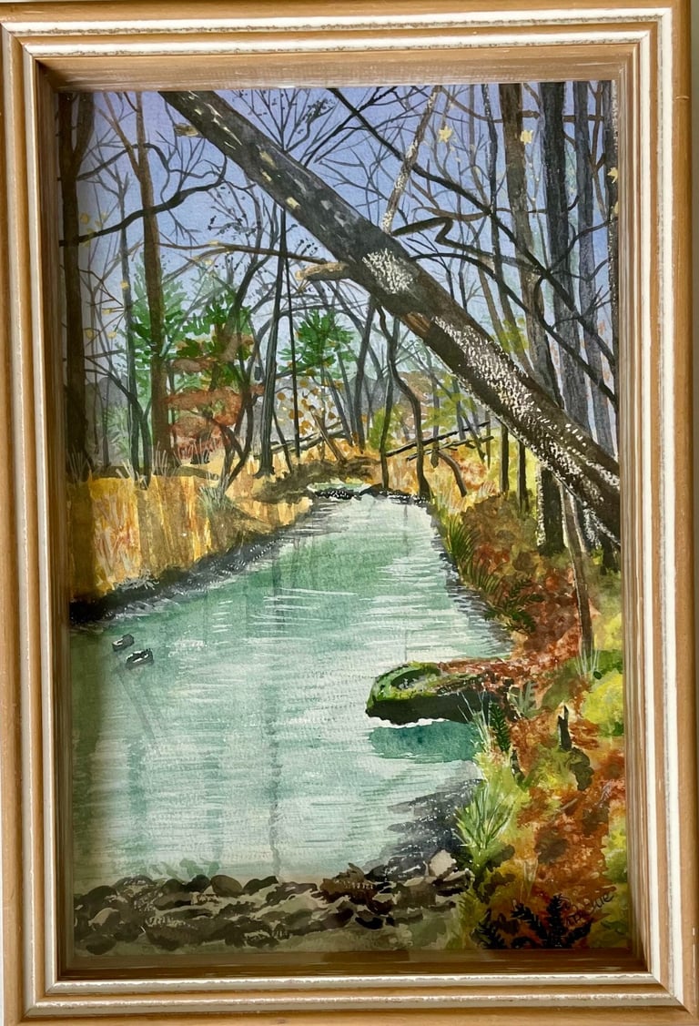 When I get chance to do a "Talking Walk" with a cherished friend and colleague, especially in a beautiful place new to me on a sunny day...I'm all in! Inspired by the day and the place (along Stone Dam Creek in Conway, Ar), I had to give the above photo a try! Honestly the watercolor depiction (on 140 pound cold pressed watercolor paper with Rosa Gallery professional watercolors) isn't that exciting...but one look and I remember the warmth of the day and the friendship!