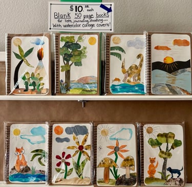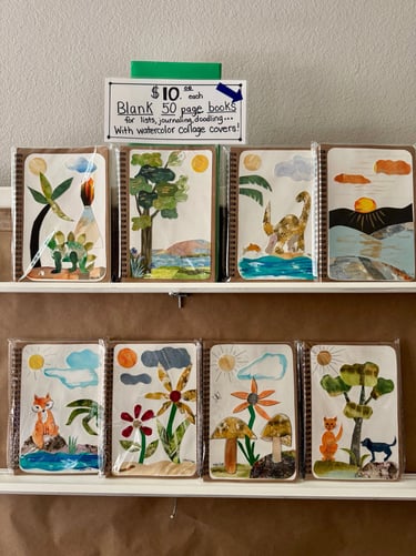 As a kindergarten teacher and Mom, my very favorite children's author has always been Eric Carle! Very Hungry Caterpillar anyone? Once I got brave enough to cut up some finished but not loved watercolor paintings to make pumpkins I was brave enough to keep cutting! I then followed Eric Carle's inspiration to make these cheerful collages on flat canvasses with matte medium. Still have 2 of these available!